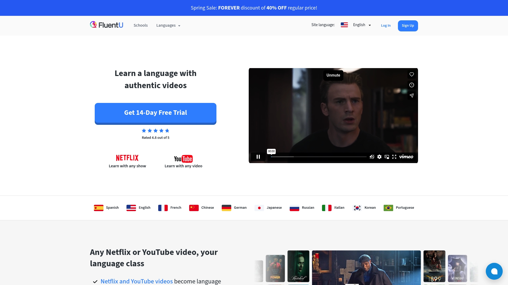 FluentU turns authentic videos into interactive language lessons with clickable subtitles and a personalized review engine. It is strongest for learners who want listening practice and contextual vocabulary drawn from movies, TV clips, and real conversations.