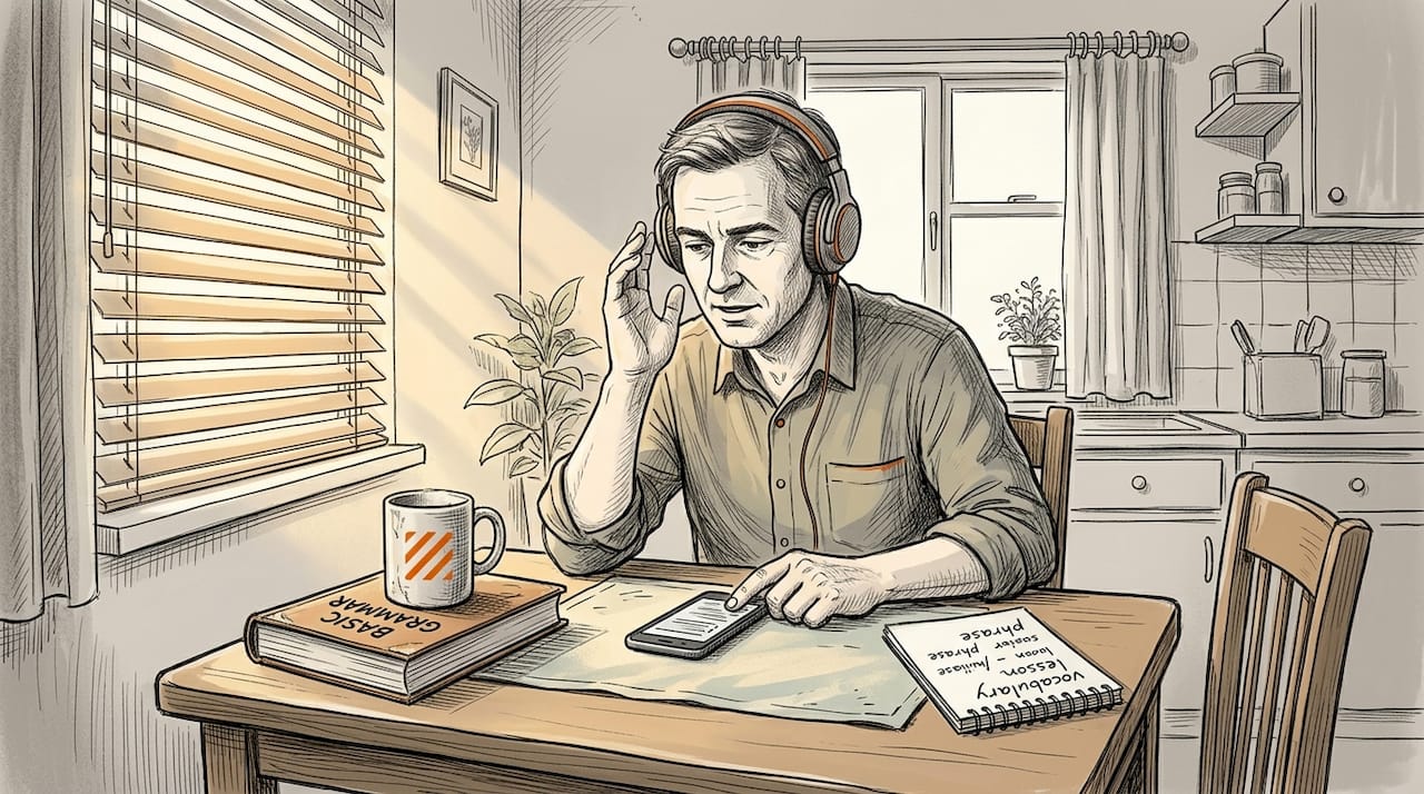 - Reflect and record (5 minutes). Write down 3 to 5 new words or structures you want to remember. Note what felt hard. This reflection step is what most learners skip, and it's what separates consistent improvers from people who plateau.