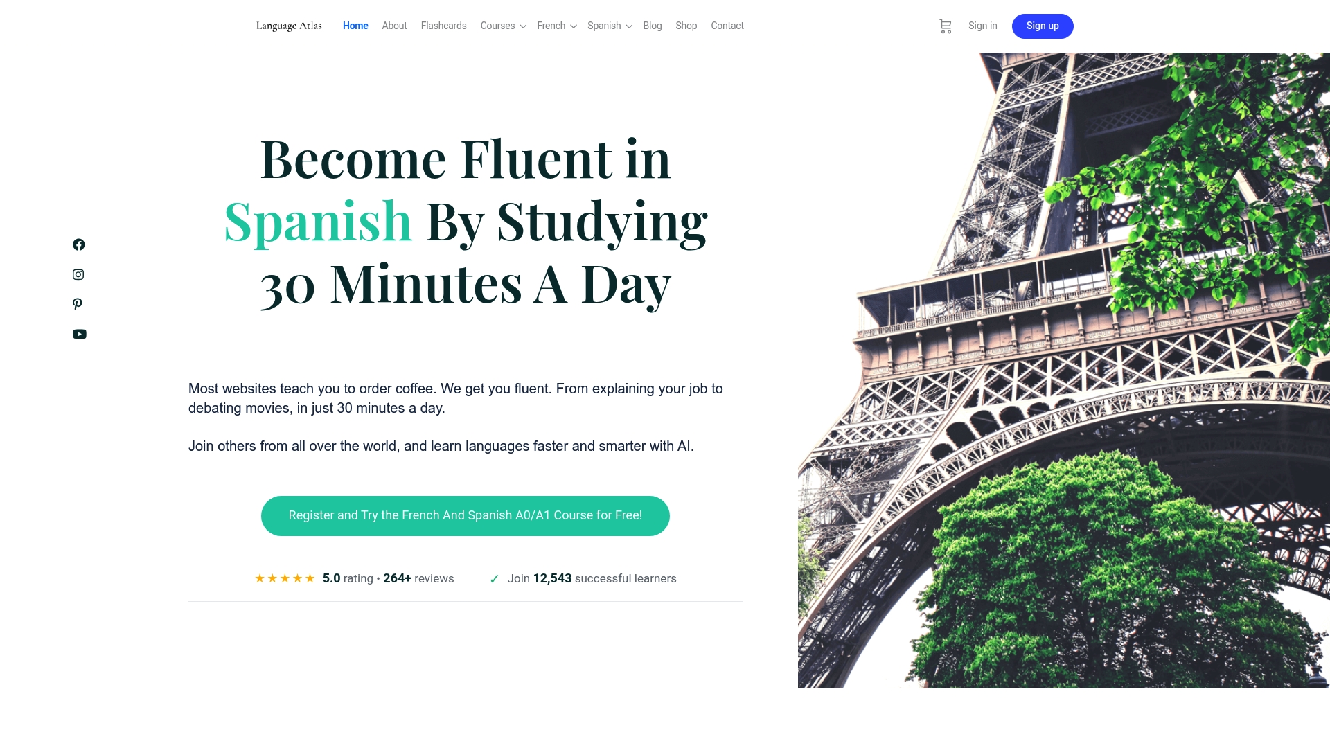 Language Atlas offers a disciplined, time efficient path to fluency for Spanish, French, German, Italian, and Portuguese learners who commit to 30 minutes a day. The program combines structured lessons with AI tools to move learners from A0 to C1 within a clear roadmap.