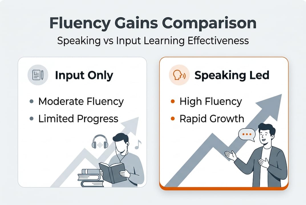 Yes. Speaking-led learners gain 33% more fluency than those using input-only methods, making it the most effective approach for intermediate learners ready to move beyond recognition.