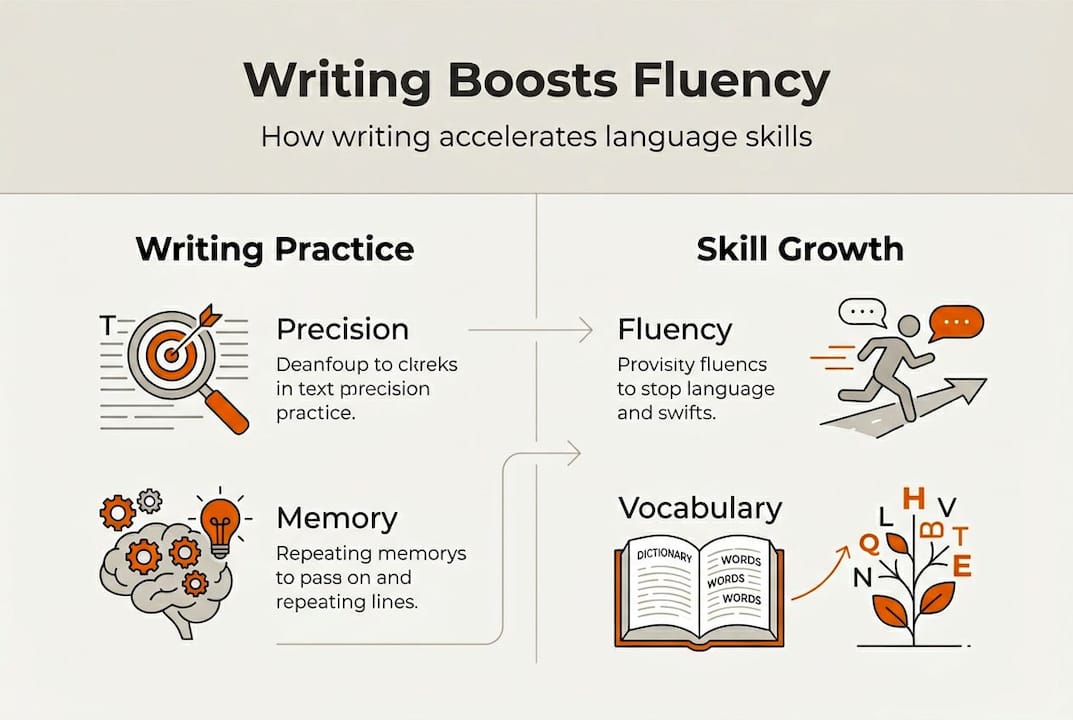 Most intermediate language learners pour hours into conversation practice, convinced that speaking is the fastest path to fluency. Yet research reveals a surprising truth: writing in your target language activates cognitive processes that speaking alone cannot replicate. When you write, you engage deeper linguistic structures, wrestle with grammar in real time, and internalize vocabulary patterns that transform passive knowledge into active command. This article unpacks why writing accelerates fluency gains, how it develops collocational proficiency that native speakers recognize instantly, and practical strategies to make your writing practice both effective and engaging.